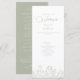 Um belo e elegante cartão do programa de cerimônia de casamento, com um design de arte floral de flor silvestre em um tema de cor verde de sábio. É usada uma fonte impressionante de script que funciona bem e parece na moda e sofisticada. Esta peça está pronta para você personalizar com os detalhes do seu dia especial. As cores e fontes podem ser alteradas se você desejar ou sair conforme mostrado aqui. Parte de uma coleção cada vez maior, por favor, navegue no Sage Green Floral Elegant Wildflower Wedding Suite para obter itens correspondentes.