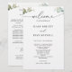 Elegante programa Casamento com belos elementos caligrafia manuscritos modernos e delicados detalhes verdes de Eucalyptus. Capacidade de fazer alterações e ajustes de texto selecionando personalizar ainda mais. Frente com detalhes da cerimônia de casamento, volte com nomes de festa de casamento e obrigado que envie para seus convidados. Elegante moderno, mínimo. Parte de nossa coleção "Casamento Eucalyptus mínimo e gracioso" com uma variedade de produtos de coordenação disponíveis, incluindo cartazes de casamento, cartões de assentos, cardápios, números de mesas e muito mais.