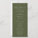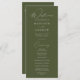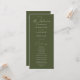 Um programa de casamento elegante com um moderno roteiro de caligrafia branca com um fundo verde-oliva para criar um design perfeito para casamentos de todos os estilos e estações. Personalize a frente do programa de casamento moderno com seus nomes, data e local do casamento, e ordem da cerimônia. O simples programa de casamento verde-azeitona inverte-se para exibir uma lista de sua festa de casamento. A design foi criada para coordenar com a nossa coleção de casamento da Elegância Moderna.