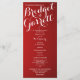 Programas de casamento de placa de rack impressa com design de texto vermelho e branco profundo com texto branco, altere o texto conforme preferido.