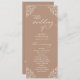 Esses elegantes programas de casamento esticados ou beges apresentam um quadro decorativo de ornamentado com a caligrafia moderna. Esses programas de casamento de chá são planos com frente e trás. A sua festa de casamento e obrigado está no verso. Ver peças correspondentes nesta coleção de casamento.