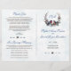 Chic Berries Bullfinch Winter Wreath Wedding Program Romântico Carteira com design de inverno (ramos de abeto, frutos vermelhos e folhagem) com dois pássaros (bulfinch), que abre espaço para as iniciais da noiva e do noivo, tudo sobre fundo branco com flocos de neve esmaecidos. Use a ferramenta Personalizar para adicionar suas informações. Veja, também, minha coleção de celebrações de eventos da vida de inverno.