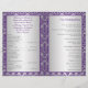 Este programa de casamento tema damasco prateado e roxo de 8,5"x11" foi projetado para ser dobrado pelo centro. ****POR FAVOR, OBSERVE que o papel de mais alto é um estoque de cartão e não se dobra bem. Todo o texto é personalizável. Envie-me um e-mail para niteowlstudio@gmail.com se precisar de assistência para a personalização deste ou se tiver alguma dúvida ou pedidos para itens correspondentes.