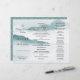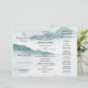 Um triplo programa de casamento com a cor d'água Misty blue / Teal Montanhas. A parte traseira apresenta uma cor correspondente a um padrão floral. Observe que a alteração do tipo de papel pode dificultar o dobramento do programa.