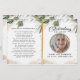 Personalize este programa funerário moderno e elegante com sua própria foto e texto para criar um tributo especial a seu amado. Um programa "In Loving Memory" que inclui o programa de som botânico Floral Foliage e memorial de sotaque dourado. No cobrir da frente está uma foto do seu amado, seu nome, datas, o local do memorial e a data do evento. Na dentro está um obituário e uma ordem de serviço, e na parte de trás está uma nota de agradecimento e o local da Nossa loja também oferece outros designs que estão oferecendo verde botânico com rosas e folhas de sotaque design e brilho/ouro e folhagem Eucalipto para atender a todas as demandas.