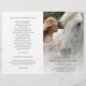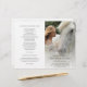 Simples programa dobrado com "Celebração da Vida" em um roteiro elegante e delicado sobre sua foto favorita do falecido. As costas têm um tempinho por um poema e reconhecimentos. A dentro tem o obituário, a ordem de serviço e a oração.
