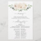 Três rosas de aquarela branca macia estão aninhadas em folhas verdes e úmidas para criar a borda superior na frente e atrás deste elegante programa de casamento. Bem-vindos e as duas categorias no verso (cerimônia e festa de casamento) são escritas em fontes modernas e tradicionais. A design aberta e arejada é melhorada pelo texto das cinzas suaves. Este programa de casamento coordena-se com a coleção Botânica de Rosa Branca. Se precisar de itens adicionais correspondentes, por favor, envie-me uma mensagem. Eu sou Nelda e adoraria trabalhar com você!