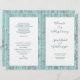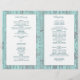 Modelo do programa de casamento católico dobrado com fundo de madeira azul rústico, impresso no papel de sua escolha. Este programa de aparência em camadas contém quatro páginas para personalização. Painéis brancos sólidos possuem o texto azul-lacrimejo que tem uma aparência moderna de script manual combinado e fontes impressas. Cada página tem espaço para muitos textos para acolher cerimônias religiosas e religiosas. A última página (verso do programa quando dobrado) inclui uma seção para a escritura (amostra é "O amor é paciente, o amor é gentil" de 1 Corinthians) e uma mensagem da noiva e do noivo. Cada folha de papel tem texto de ambos os lados para criar um programa, que será dobrado após a compra.