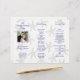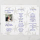 Programa de casamento com foto para dobrar em terços. Dobradura em acordeão com fundo de padrão de estrela-do-mar e texto azul-índigo. Personalize em três seções com foto do casal na capa. O verso deste papel não terá o padrão e será branco sólido.