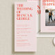 O design Belmont mostra uma grande tipografia que mostra orgulhosamente os nomes dos casais. Como vocês olham abaixo, os detalhes essenciais da comemoração são graciosamente apresentados em uma pequena fonte de serifa clássica.