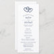 Nosso programa de casamento de chic costeiro apresenta os detalhes da sua cerimônia em letras marinhos azuis acentuadas com um par de ilustrações cardíacas de corda náutica com nós.O lado inverso lista os membros da sua festa de casamento com campos de texto facilmente editáveis. Coordena com nossa coleção de convites para casamento de Corações Corações Cortados para o verão elegante, praia ou casamentos náuticos. Use os campos modelo para adicionar informações sobre sua cerimônia e noivado e clique em "Personalizar" para reposicionar elementos, se necessário. Precisa de ajuda? Entre em contato comigo através do link "Perguntar a este Designer" nesta página.