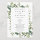 Este programa de casamento apresenta cores aquáticas pintadas de eucalipto, folhas verdes e quadro retangular. Para personalização mais avançada deste design, clique no link "Personalizar mais". Itens correspondentes também estão disponíveis.
