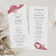 Nosso programa de casamento de chic costeiro apresenta os detalhes da sua cerimônia em letras marinhos azuis acentuadas com uma ilustração de lagosta gravada no estilo vintage em vermelho esmaecido. O verso lista os membros da sua festa de casamento com campos de texto facilmente editáveis. Coordena-se com nossa coleção de convites para casamento em Harborside para verão elegante, praia ou casamentos náuticos. Use os campos modelo para adicionar informações sobre sua cerimônia e noivado e clique em "Personalizar" para reposicionar elementos, se necessário. Precisa de ajuda? Entre em contato comigo através do link "Perguntar a este Designer" nesta página.