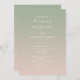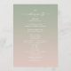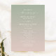 Programa Simples de Cerimônia de Casamentos Verde e Rosas claro. Este moderno cartão mínimo de serviços é simples, clássico e elegante, com um desvanecimento sutil do gradiente ombre e uma bonito letra de caligrafia com script de assinatura com caudas. Mostrada na nova estrada. Disponível em várias opções de cor ou não se sinta à vontade para editar as cores no editor (clique em personalizar mais enquanto personalizar). Para ver mais, procure as coleções de casamento de 2022 da Chic Paperie para ver todas as tendências de designs e cores de casamento para este ano.