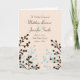 Faça um programa de casamento/cartão de serviço como cortesia para seus convidados e um momento da sua cerimônia de casamento. Este programa de casamento apresenta um design de silhueta floral azul e marrom sobre um fundo creme. Todo o texto pode ser facilmente personalizado na página de pedido do produto. Você pode usar o exemplo da cerimônia de casamento incluído ou escrever o seu próprio. Também oferecemos um programa de casamento amigável em orçamento que você se dobra. Verifique os outros produtos coordenadores da nossa coleção de casamentos florais russos.