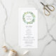 Nosso programa de casamento de chic no jardim apresenta os detalhes da sua cerimônia em letras elegantes, com seus nomes cercados por uma coroa de folhas e folhagem de cor aquática verde. O verso lista os membros da sua festa de casamento com campos de texto facilmente editáveis. Coordena-se com a nossa coleção de convites de casamento Eucalyptus Wreath para casamentos de verão, primavera, ao ar livre ou jardim. Use os campos modelo para adicionar informações sobre sua cerimônia e noivado e clique em "Personalizar" para reposicionar elementos, se necessário. Precisa de ajuda? Entre em contato comigo através do link "Perguntar a este Designer" nesta página.