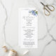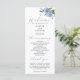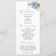 Elegante programa de núpcias com ilustração aquática de peônia azul com verde. Todas as informações da cerimônia de casamento e o nome da festa de casamento listados neste programa.