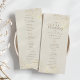 Este elegante programa de casamento apresenta ilustrações florais de ouro delicadas em um fundo de marfim macio com modernos roteiros e fontes serif. Perfeito para listar sua ordem de cerimônia e detalhes de festa de casamento em um layout formal e refinado. Um eterno adicional ao seu clássico dia de casamento.