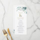 Cartões do programa de casamento de dois lados para combinar com a nossa coleção de casamento de Luxe Floral. Este design elegante moderno apresenta uma falsa folha de alumínio de ouro com borda floral de cor d'água de verde suculento e flores. Use as ferramentas de design para personalizar o layout, as cores de fundo e o texto com os detalhes da cerimônia de núpcias na frente e nos nomes das festas de casamento no verso.