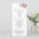 Elegante programa de núpcias com ilustração aquosa de peônia rosa com verde. Todas as informações da cerimônia de casamento e o nome da festa de casamento listados neste programa.
