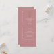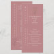Guie seus convidados através do seu grande dia com este programa mauve de cerimônia de casamento, com o layout vertical moderno, a tipografia limpa e sotaques florais suaves. Perfeito para casamentos românticos, minimalistas ou de tom esmagador, este programa traça a sua ordem de cerimônia e festa de casamento com elegância. Personalize com seu próprio texto, nomes e cronograma. Quer você esteja planejando uma cerimônia tradicional ou uma celebração moderna, esta na moda mantém seus convidados informados e conectados. Paira maravilhosamente com convites mauve correspondentes, cartões RSVP, menus, e sinalização de casamento para uma suíte coesa.