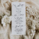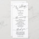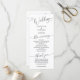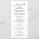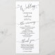 Programa de casamento mínimo com fonte moderna. Todas as informações da cerimônia de casamento e o nome da festa de casamento listados neste programa.