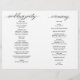 Esses programas clássicos de cerimônia de casamento são perfeitos para os seus convidados! Muito espaço para incluir grupos de noivos maiores e informações mais longas da cerimônia. Ao selecionar uma opção de papel, lembre-se de que esses precisarão ser dobrados no centro.