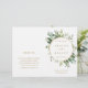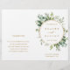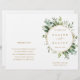Este programa de cerimônia de núpcias apresenta cor d'água eucalipto verde, folhas verdes e um quadro circular de ouro. Para personalização mais avançada deste design, clique no link "Personalizar mais". Itens correspondentes também estão disponíveis. NOTA: Você precisará dobrá-los ao meio quando eles chegarem.