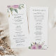 Nosso programa de casamento floral do jardim apresenta os detalhes da sua cerimônia em letras elegantes, tostados com um spray de flores pintadas de aquarela em púrpura de lavanda pastel e verde de sábio. O verso lista os membros da sua festa de casamento com campos de texto facilmente editáveis. Coordena nossa coleção de convites para casamento Violet & Sage para casamentos de verão, primavera, ao ar livre ou jardim. Use os campos modelo para adicionar informações sobre sua cerimônia e noivado e clique em "Personalizar" para reposicionar elementos, se necessário. Precisa de ajuda? Entre em contato comigo através do link "Perguntar a este Designer" nesta página.