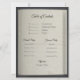 Torne o seu dia de casamento ainda mais especial com esta bela Mesa do Programa de Casamento ao estilo do Conteúdo! Este programa único é projetado para se parecer com uma mesa de conteúdos de livros abertos; perfeito para qualquer casamento de conto de fadas, livro de histórias, literário ou temática de biblioteca. Personalize-o com o seu partido nobre e a ordem dos eventos para garantir que todos os detalhes da sua celebração sejam lembrados. Obtenha a adição perfeita para sua alegria para sempre com esta bela modelo do Programa Casamento!