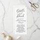 Um programa minimalista de cerimônia branca, combinado com a tipografia negra moderna, para um olhar absolutamente espantoso! O lado inverso lista os membros da sua festa de casamento. Crie seu próprio pacote de convites de casamento com outros itens correspondentes.