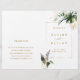 Este casamento, exceto a data do convite, contém: cor d'água, folhagem tropical verde, folha de monstera, folhas de palmeiras, folhas de bananeiras e acentos de folhas falsas de ouro. É perfeito para um casamento de praia ou destino. NOTA: Você precisará dobrá-los ao meio quando eles chegarem.