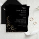 ** SATIN PAPER É PAPEL FINO. ATUALIZE O PAPEL PARA OBTER UM PAPEL MAIS ESPESADO. TEM UMA OPÇÃO PARA ENVELOPES. *** Economize dinheiro em convites formais com este convite menor que tem uma opção para envelopes. Prepare seus convidados para o incrível janto de ensaio com seu Dourado Programa de Cerimônia de Casamento Floral em Preto. Quer uma versão maior do stock de cartão? Veja a nossa coleção de cartões. https://www.zazzle.com/collections/gold_lined_floral_invitation_suite-119041437435827916?rf=238937196885903396