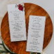 Elegante programa de núpcias com ilustração aquática de marinho e peônia de burlu com verde. Todas as informações da cerimônia de casamento e o nome da festa de casamento listados neste programa.