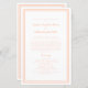 O programa de cerimônia de casamento elegante e minimalista apresenta um simples design moderno com uma dupla borda em pêssego, em um fundo branco nítido. A formulação tradicional e clássica proporciona sofisticação ao eterno. Personalize os detalhes da cerimônia de núpcias para seus hóspedes em letras de caligrafia de pêssego e roteiro. A parte traseira da placa combina com o pêssego em branco nítido e é tudo sobre sua festa de casamento. Para obter resultados ideais, substitua os detalhes do modelo com seus próprios detalhes, deixando espaço entre os parágrafos, como no exemplo. Capitalizar e usar todas as minúsculas quando especificadas. Sinta-se livre para entrar em contato comigo em invitationsuites@gmail.com ou com o recurso de mensagem se você tiver dúvidas sobre este ou qualquer de nossos produtos ou tiver uma solicitação de cor personalizada.