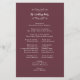Elegante programa tradicional de cerimônia de núpcias apresenta uma design formal romântica. Duas decorações florescem cada uma contendo um coração solteiro rodeando lindamente os nomes dos casais na frente do programa e a legenda "A Festa de casamento" na parte traseira. Personalize todos os detalhes em delicadas letras brancas e guião em um fundo romântico de burgundy. Para obter resultados ótimos, substitua os detalhes do modelo com seus próprios detalhes, deixando espaço entre os parágrafos como no exemplo e capitalizando onde especificado ou se a palavra for um nome adequado e normalmente capitalizado. Se você precisar de assistência com espaçamento para tornar seus detalhes perfeitamente ajustados, por favor, envie-me uma mensagem no link fornecido na lista ou envie um e-mail para invitationsuites@gmail.com. Normalmente respondo dentro de 24 horas ou menos. Solicitação de cor personalizada aceita.