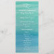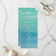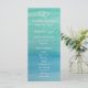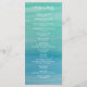 Aqua turquesa azul-aquaresca azul-aquarela programa de cerimônia de praia modelo. Design de verão com corações românticos e tipografia de na moda. Fundo de pintura verde-marinho com texto branco. Personalize o que deve estar em seu programa. Papel de carta de casamento de tendências com corações entrelaçados/entrelaçados para noiva e casal noivo. Incluir nomes, data, local, ordem da cerimônia e festa de casamento. Parte do conjunto de temas que combinam com acessórios de noiva e muito mais. Design coordenado a cores clássicas para casamento exótico tropical de destino litoral no Havaí, Bahamas, Ilhas Virgens, Bermudas, Aruba, etc. Bonito logotipo do símbolo de amor interbloqueado.