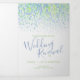 Um programa de renovação do casamento azul-verde de arte moderna de seis páginas. Edite este programa de casamento com seus próprios nomes de renovação de casamento, datas, introdução, redação de cerimônias, assistentes de festa de casamento, foto de seu primeiro elopeio ou casamento restrito, e seus obrigados. Arte original e design por www.mylittleedenweddings.com