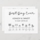 Seus hóspedes vão adorar ler todos os detalhes do seu casamento sobre esses lindos Programas de Cronologia de Casamentos! Ele apresenta o topo e o centro do "Melhor Dia de Todos" em uma bela fonte escrita à mão e você pode facilmente editar a linha do tempo do ícone para acomodar a agenda do dia do casamento. Este programa 5.5 x 7.5 é perfeito se seu casamento é em um clube de campo, resort ou até mesmo no tribunal. É simples, modesto e minimalista e as fontes são modernas e fáceis de ler. Faça-o tão único quanto você!