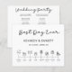 Este programa moderno e elegante da timeline do dia do casamento para um casamento em uma montanha, na floresta ou floresta com ícones para que todos saibam quem está na festa de casamento, o fluxo da tarde/noite, e uma nota especial de obrigados para os convidados é fabulosa! É simples, moderno, e as fontes são limpas e fáceis de ler. As horas podem ser mudadas para que você possa personalizar facilmente este programa para o seu casamento. E é menos caro que os programas padrão sem comprometer o estilo.