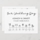 Seus hóspedes vão adorar ler todos os detalhes do seu casamento sobre esses lindos Programas de Cronologia de Casamentos! Ele apresenta o topo e o centro do Dia do Casamento em uma bela fonte escrita à mão e você pode facilmente editar a linha do ícone para acomodar a agenda do dia do casamento. Este programa 5.5 x 7.5 é perfeito se o seu casamento é numa ilha ou na praia. É simples, modesto e minimalista e as fontes são modernas e fáceis de ler. Faça-o tão único quanto você!