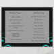Preto e Branco com Programa de Casamento Reverso de Aqua. Dobre este panfleto de dois lados ao meio para um Programa de Casamento elegante ou Menu. Este item está disponível como uma coleção completa de negócios e casamento, incluindo cartões de visitas, artigos de papelaria, convites, cartões RSVP, Salvar Datas, Magnets, Adesivos, Cartões de Local de Mesa, Planejamento de Casamentos e Binders de Álbum de Fotografias e Mais!