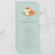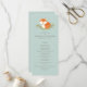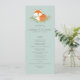 Uma linda raposa está presa em uma cama de folhas e galhos nesta doce ilustração de Kat Parrella. Com um fundo de cinza macio, o esquema de cores é neutro neste cartão de programa que é perfeito para um evento temático rústico, chic ou popular de bosque.