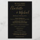 Programa de fim de semana de casamento com nomes em estilo de assinatura elegante em preto e dourado. Personalize com os detalhes do seu fim de semana de casamento em letras brancas elegantes. Criado por Thisisnotme