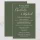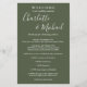 Programa de fim de semana de casamento com assinatura verde-oliva elegante com nomes de estilo de assinatura. Personalize com os detalhes do seu fim de semana de casamento em letras brancas chic. Projetado por Thisnotme©