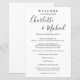 Programa de fim de semana de casamento com script de assinatura preto e branco elegante com nomes de estilo de assinatura. Personalize com os detalhes do seu fim de semana de casamento em letras brancas chic. Projetado por Thisnotme©
