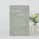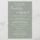 Programa de fim de semana de casamento com rótulo manuscrito verde sage elegante com nomes em estilo de assinatura. Personalize com os detalhes do seu fim de semana de casamento em letras brancas elegantes. Criado por Thisisnotme©