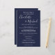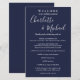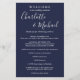Programa de fim de semana de casamento com script de assinatura azul de marinho legante com nomes de estilo de assinatura. Personalize com os detalhes do seu fim de semana de casamento em letras brancas chic. Projetado por Thisnotme©