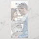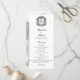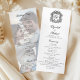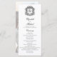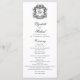Este elegante programa de casamento preto e branco apresenta uma crista ornamentado no topo com as iniciais monográficas da noiva e do noivo na letra da escrita formal do rico, e uma foto esmaecida do casal feliz no verso atrás do texto da festa de casamento.
