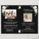 Programa de Fotografia Funeral Memorial da Ordem de Serviço. Lembrança funerária, celebração da vida. Este design apresenta flores brancas de aquarela, sobre fundo preto. Use a ferramenta Personalizar para adicionar suas informações. Para obter itens correspondentes, visite minha Comemoração Floral da Coleção de Simpatia de Vida.